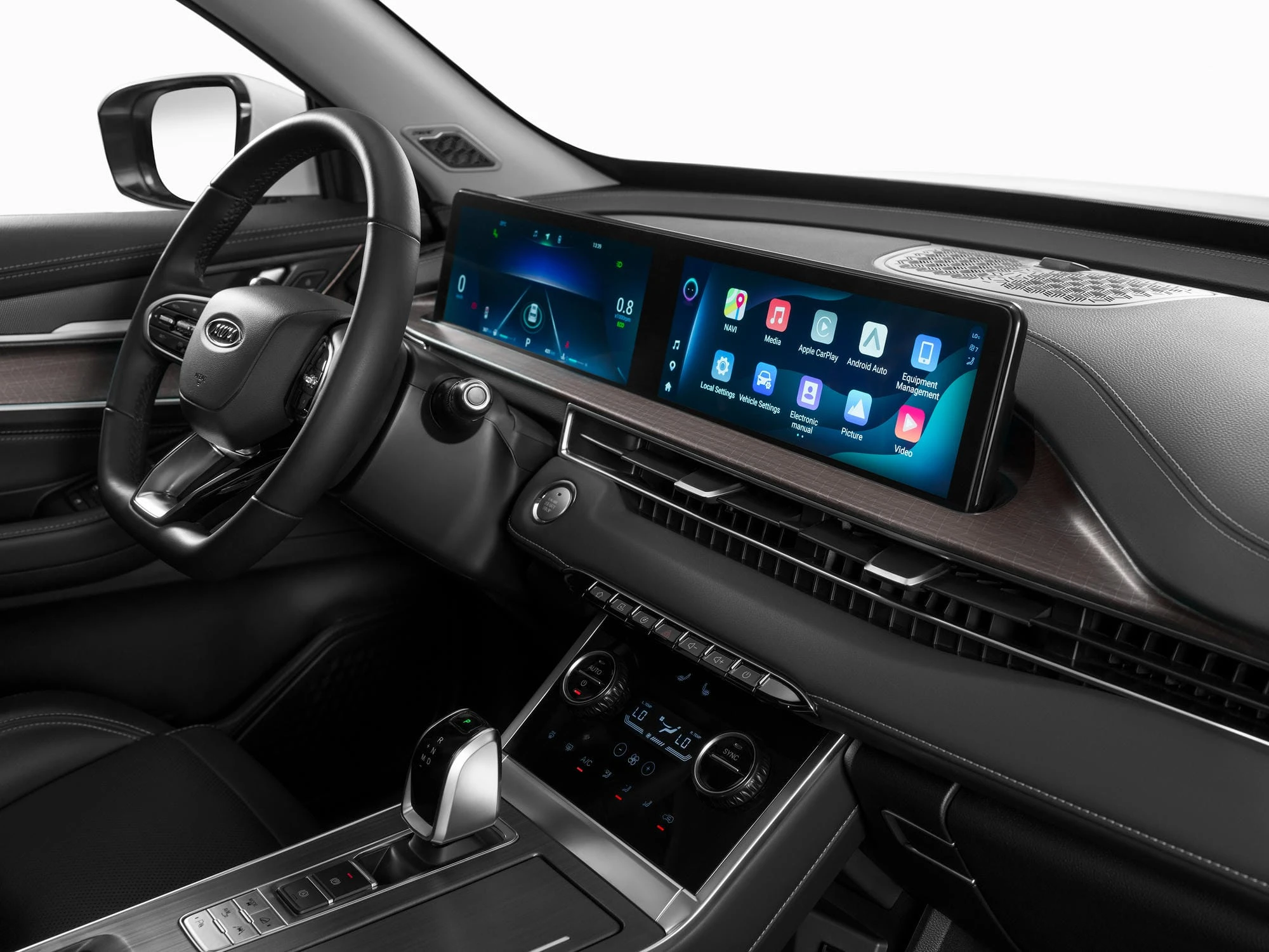 وارد کابین MVM X77 که میشوید، گویی به دنیایی دیگر قدم گذاشتهاید؛ دنیایی که در آن تجمل، راحتی و تکنولوژی به زیباترین شکل ممکن در هم آمیختهاند. داشبورد با طراحی دوبخشی و استفاده از مواد باکیفیت، حس لوکس بودن را القا میکند. نمایشگر مرکزی 12.3 اینچی شناور، مرکز فرماندهی تمامی امکانات خودرو است که دسترسی به آنها را بسیار آسان و لذتبخش میسازد. نمایشگر 7 اینچی پشت فرمان نیز اطلاعات لازم را به شکلی واضح و خوانا ارائه میدهد. صندلیهای چرمی ارگونومیک با قابلیت تنظیمات برقی برای راننده و سرنشین جلو، گرمکن و سردکن، نهایت راحتی را حتی در طولانیترین سفرها فراهم میکنند. سیستم تهویه مطبوع اتوماتیک دو منطقهای، نورپردازی داخلی قابل تنظیم و سیستم صوتی پیشرفته، تجربهای بینظیر را برای تمامی سرنشینان رقم میزنند.