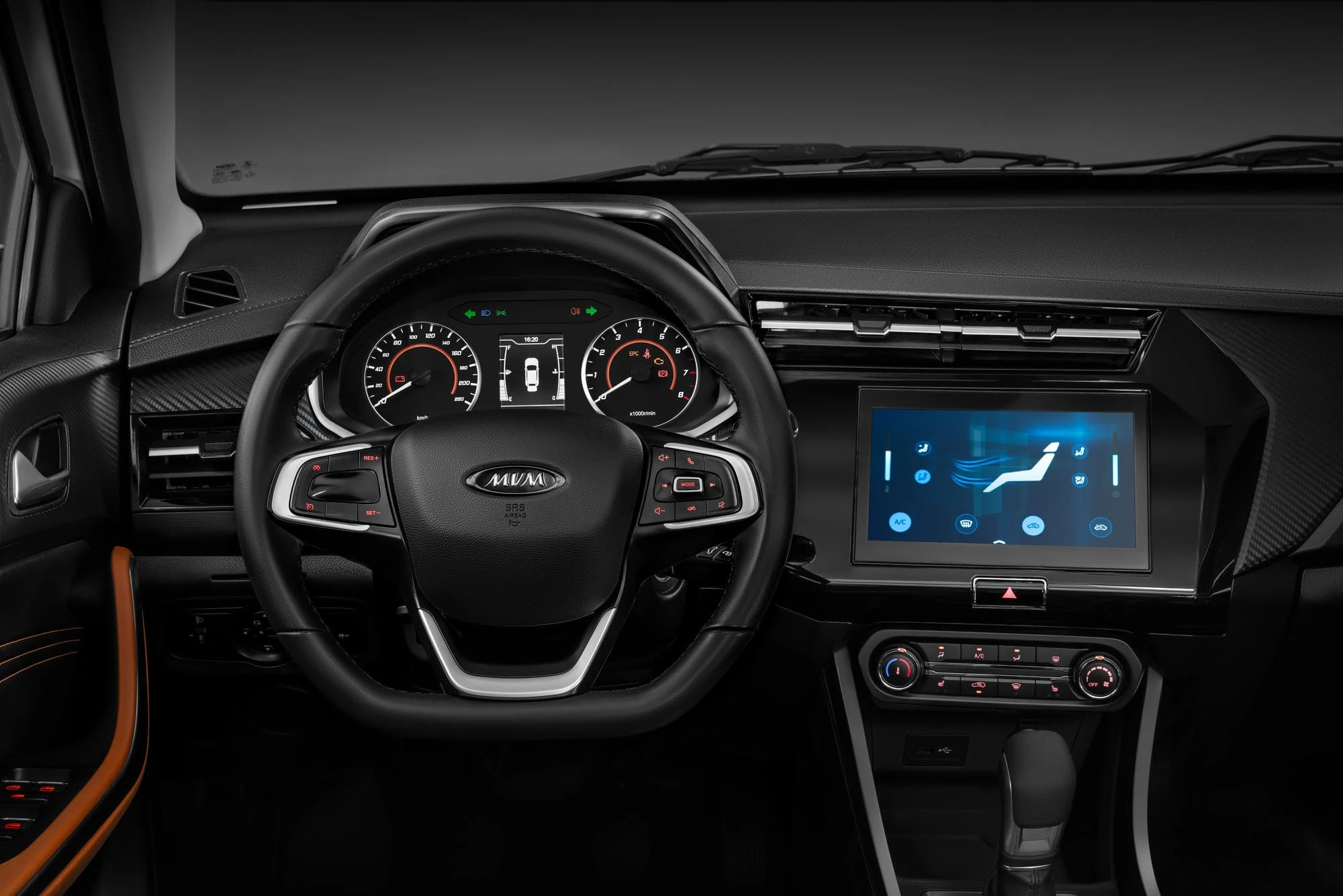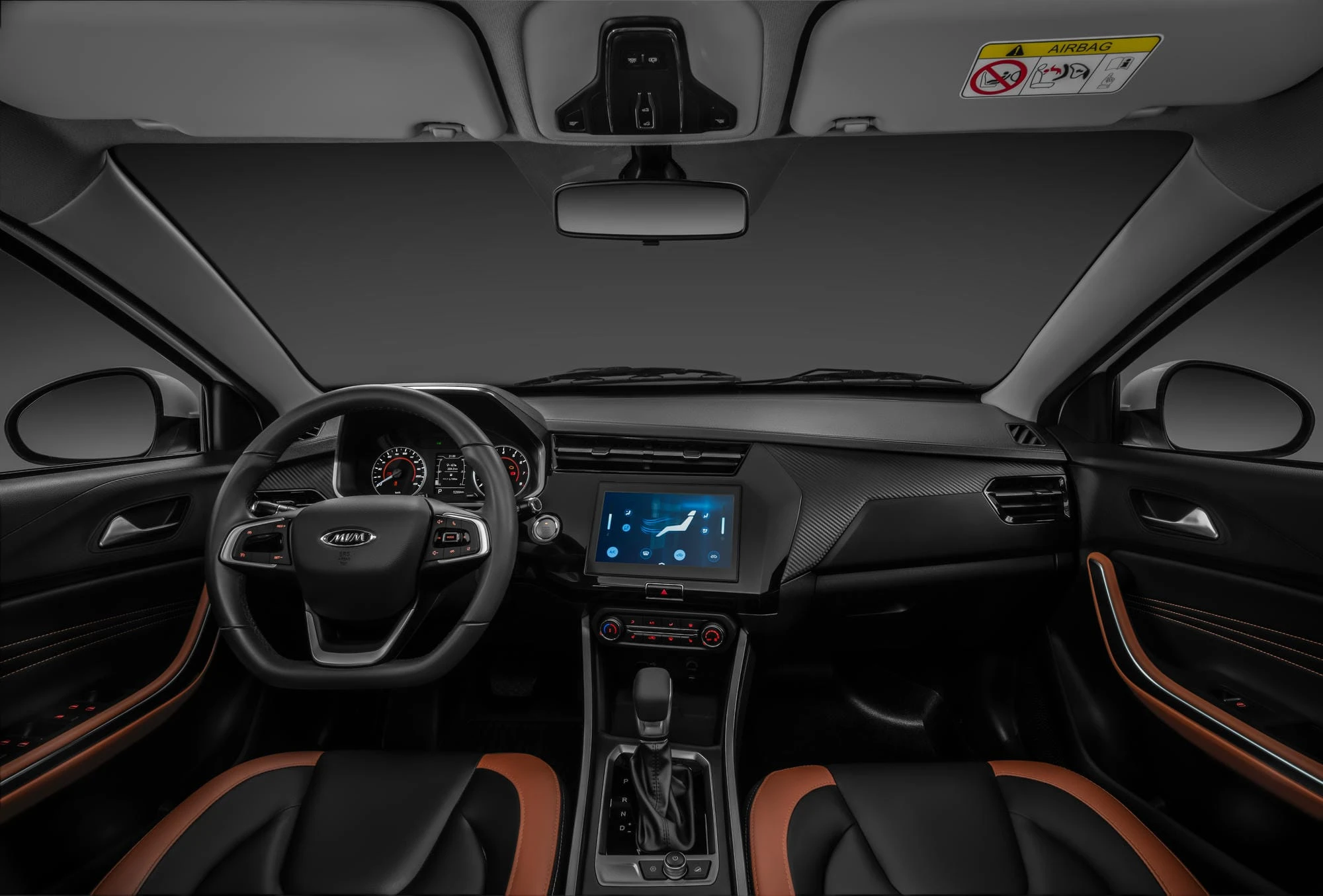 فضای داخلی MVM X22 Pro MT، با طراحی مدرن و متمرکز بر راننده، حس خوبی از راحتی و کاربردی بودن را منتقل میکند. داشبورد با طراحی منحصر به فرد و استفاده از تریمهای رنگی، فضایی پویا و دلنشین ایجاد کرده است. نمایشگر لمسی 7 اینچی سیستم سرگرمی، نقطه کانونی داشبورد است و امکان دسترسی آسان به امکانات مختلف را فراهم میکند. فرمان با روکش چرم و دکمههای کنترلی، راحتی و کنترل بیشتری را هنگام رانندگی به ارمغان میآورد. صندلیها با روکش پارچهای یا چرم مصنوعی (بسته به تیپ) و قابلیت تنظیم دستی، راحتی مناسبی را برای سرنشینان، به خصوص در سفرهای شهری، ارائه میدهند. فضای سر و پا برای سرنشینان جلو و عقب، با توجه به کلاس خودرو، کاملاً رضایتبخش است.